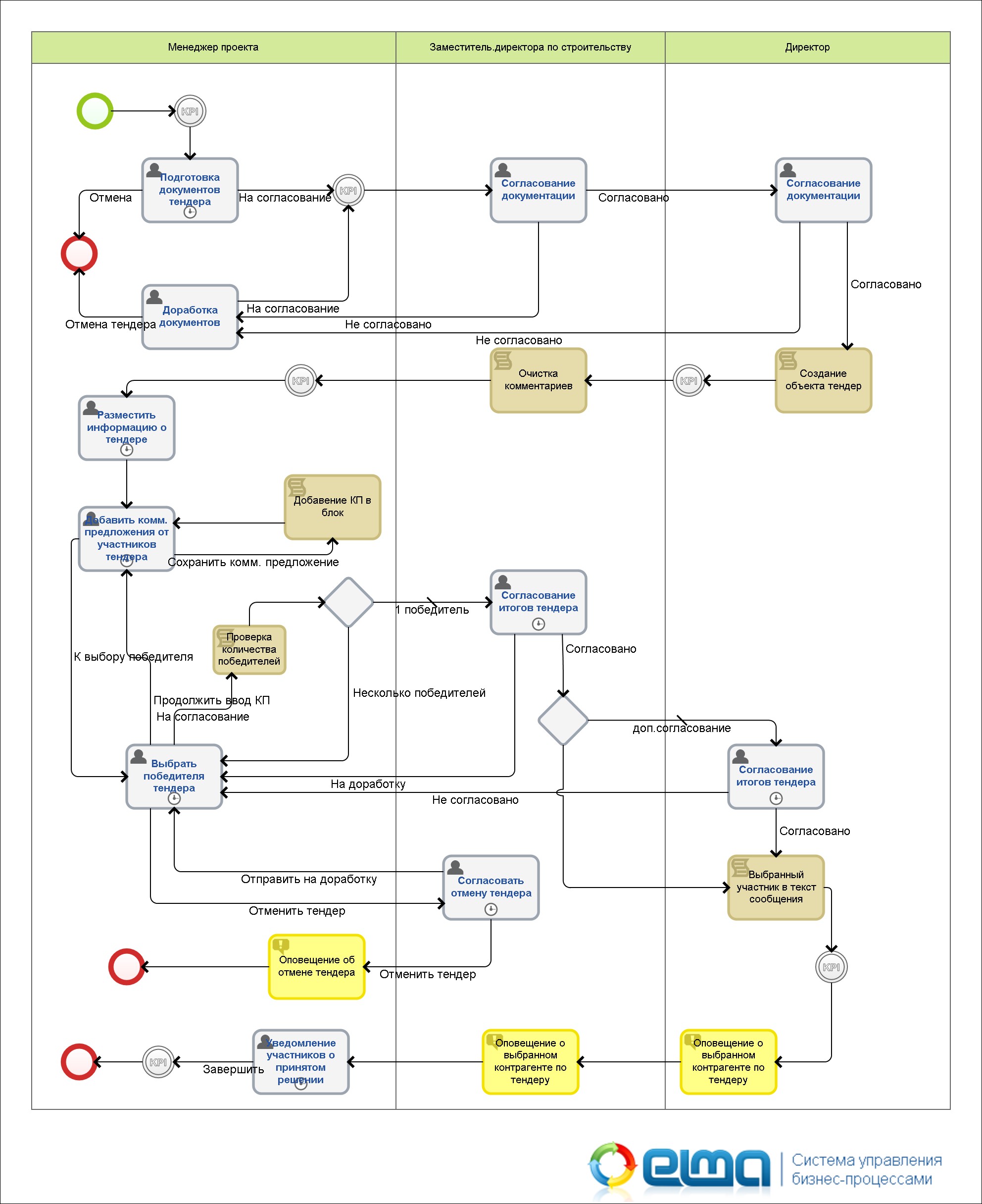 После утверждения нового тендера руководитель проекта размещает информацию о нем на информационных ресурсах. Срок выполнения задачи ограничен периодом, указанным на первом этапе процесса.